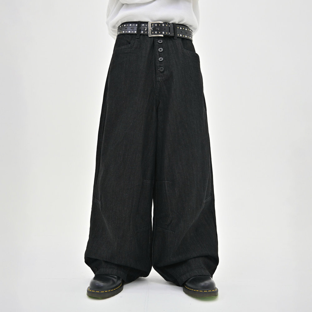 トレンドのボタンフライデニムをあえてボタンまでブラックにすることで、唯一無二のデニムに仕上がりました。