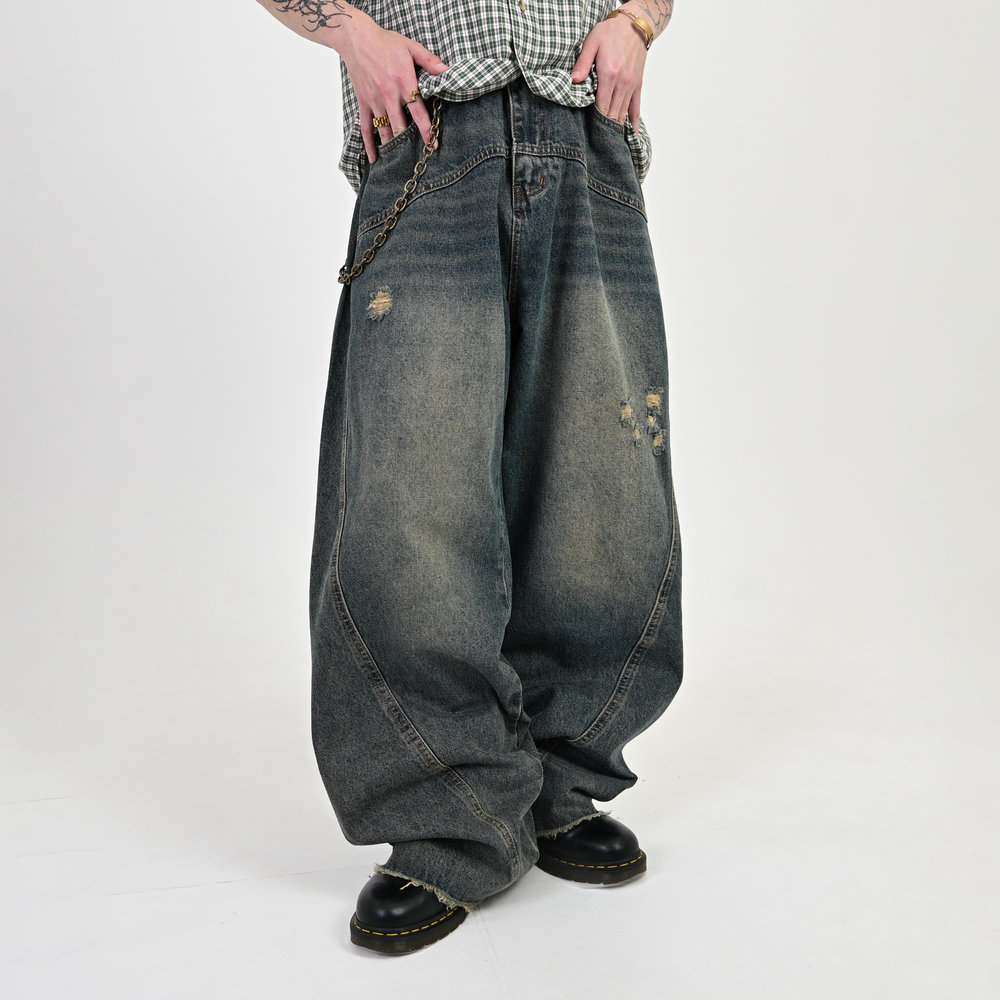 サイドラインが生む立体的なシルエットに、リアルさを追求したウォッシュ加工と控えめなダメージをプラス。程よい抜け感と着まわしやすさを両立。