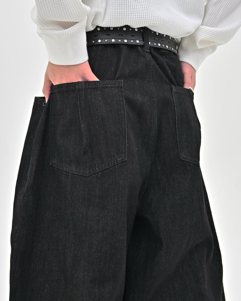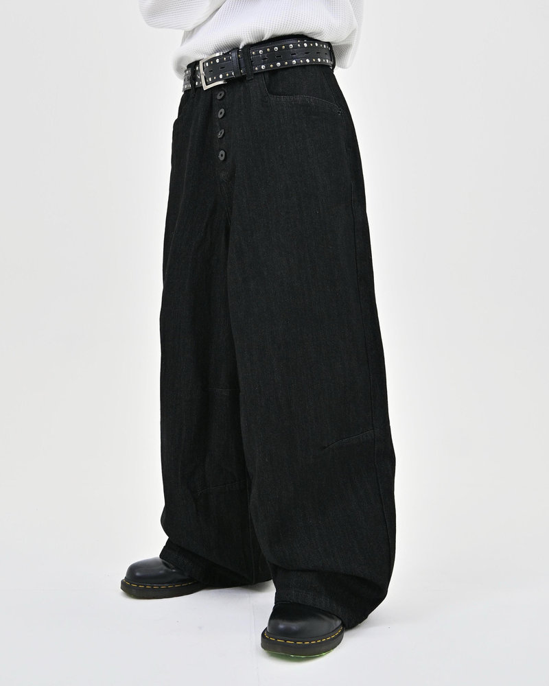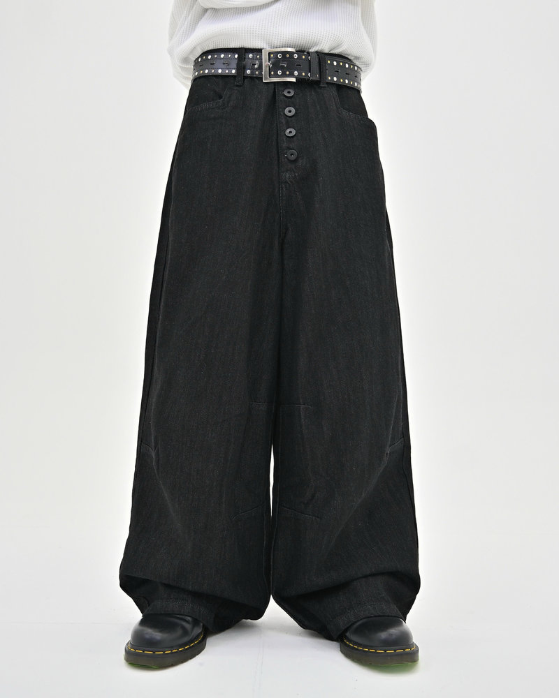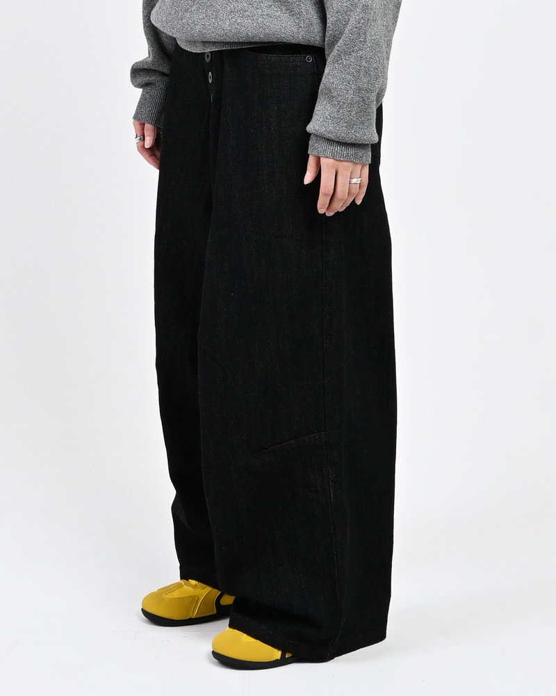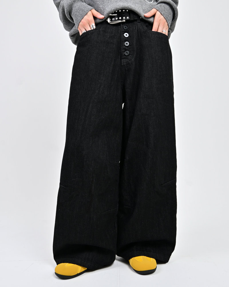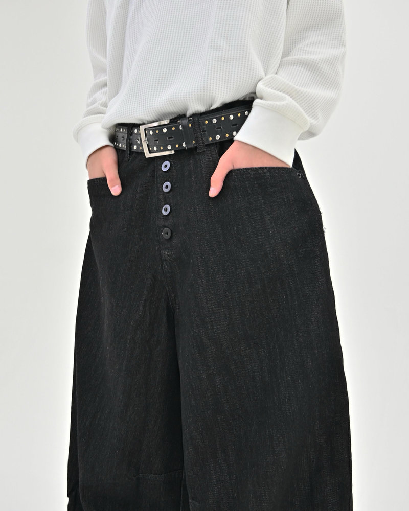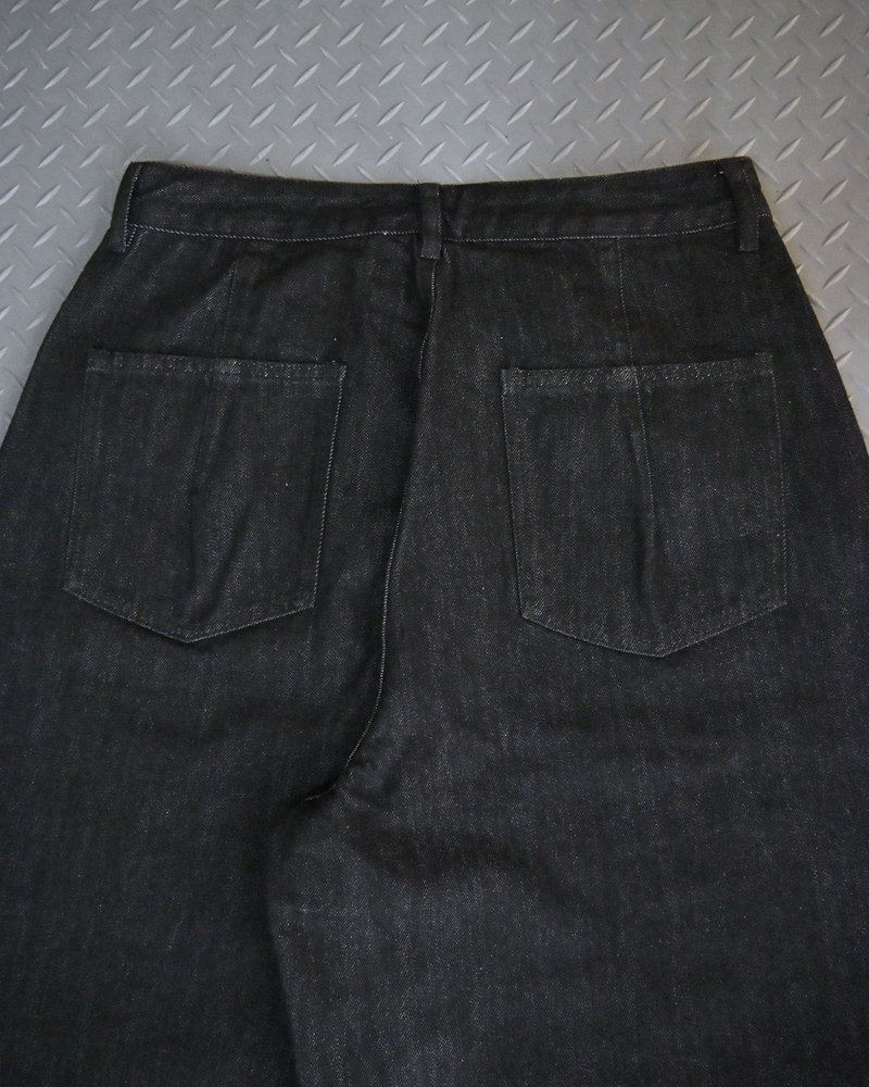 トレンドのボタンフライデニムをあえてボタンまでブラックにすることで、唯一無二のデニムに仕上がりました。