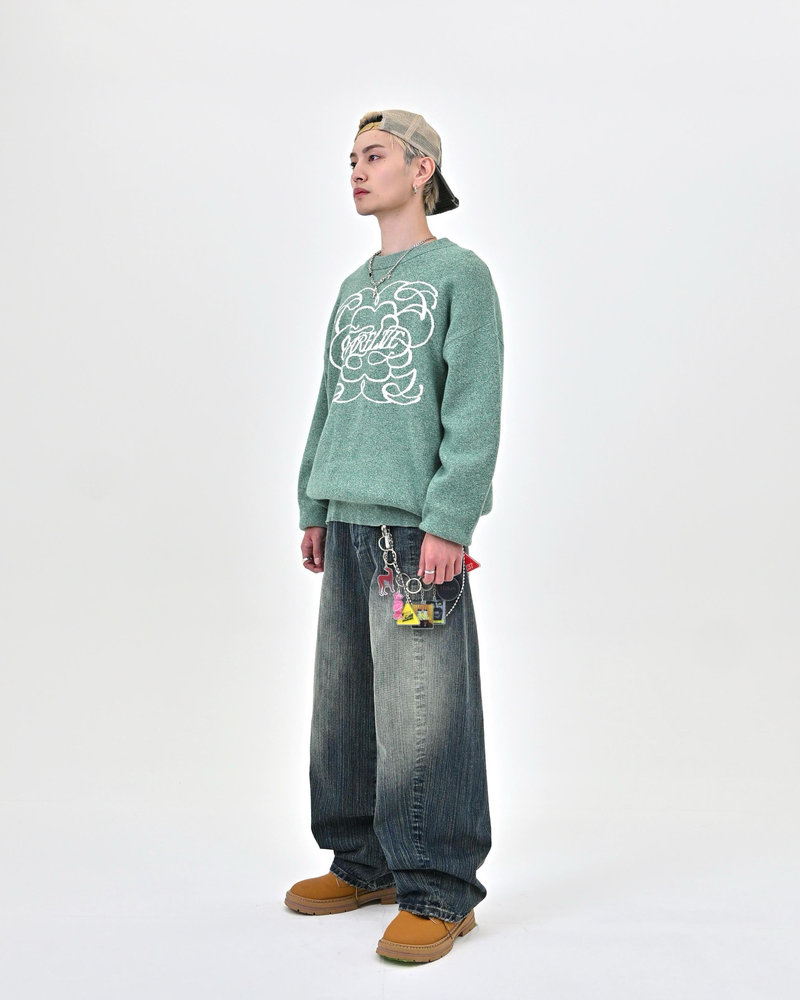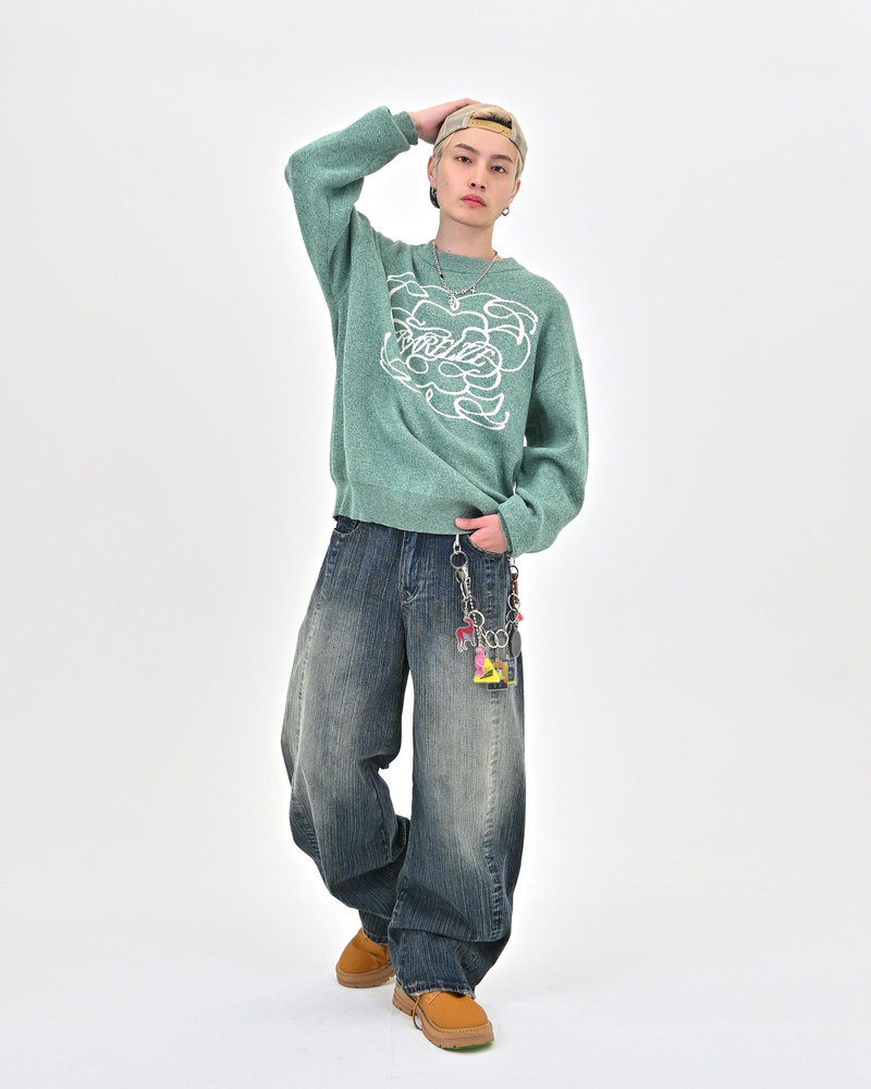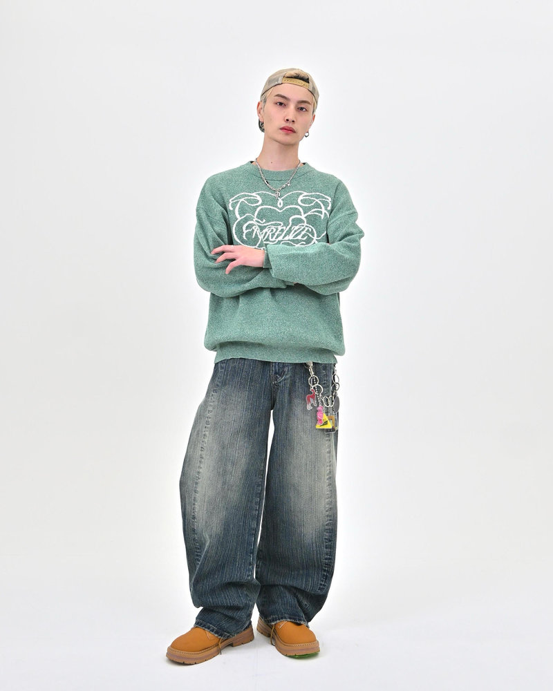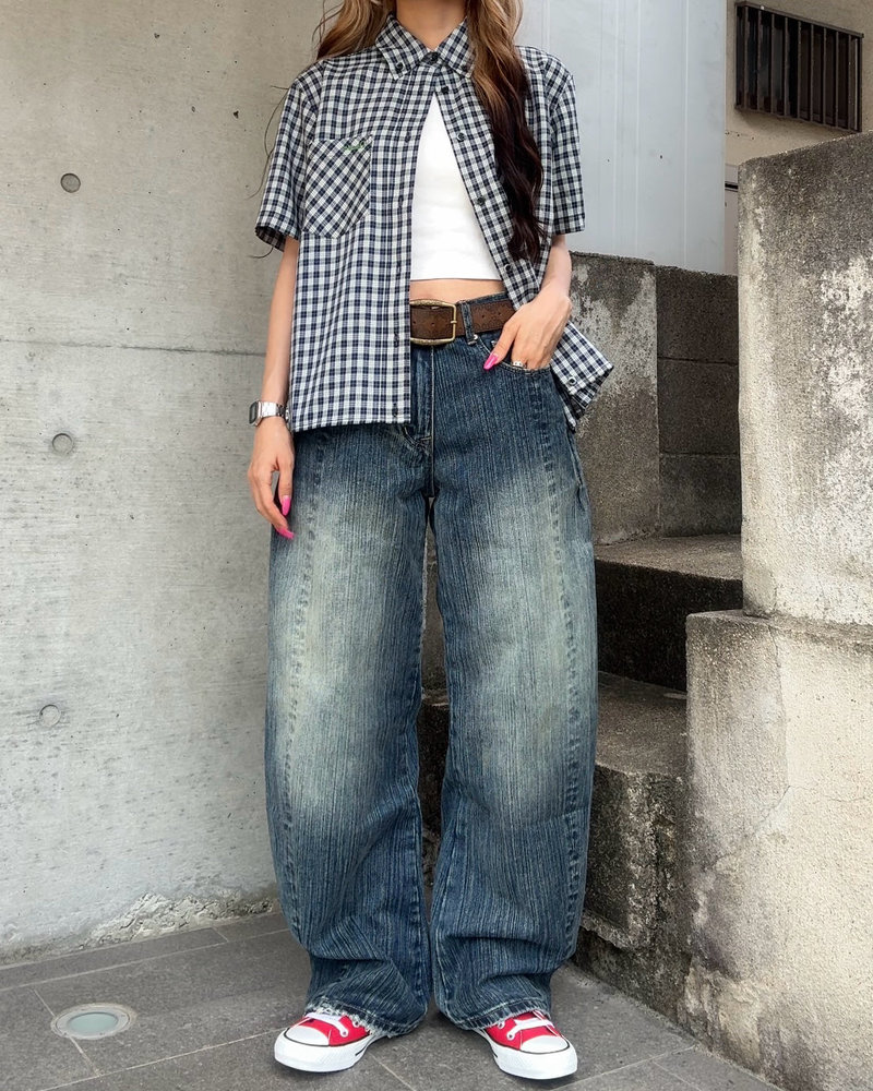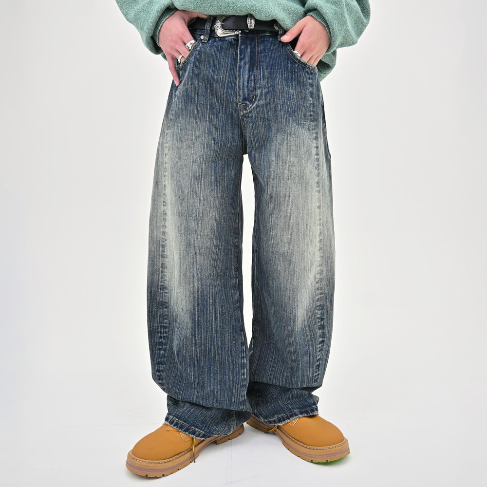 竹のような縦ラインが浮かび上がる独特の加工は、あえて不均一な糸を織り込むことで実現。控えめなバルーンシルエットに、斜めに走るカーブラインと浅めの股上が加わることで、スタイルアップ効果は抜群。