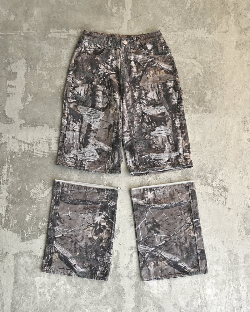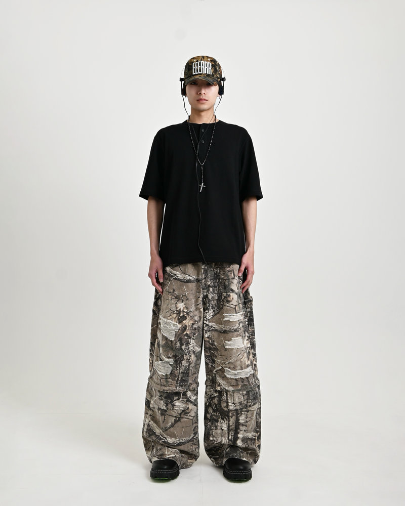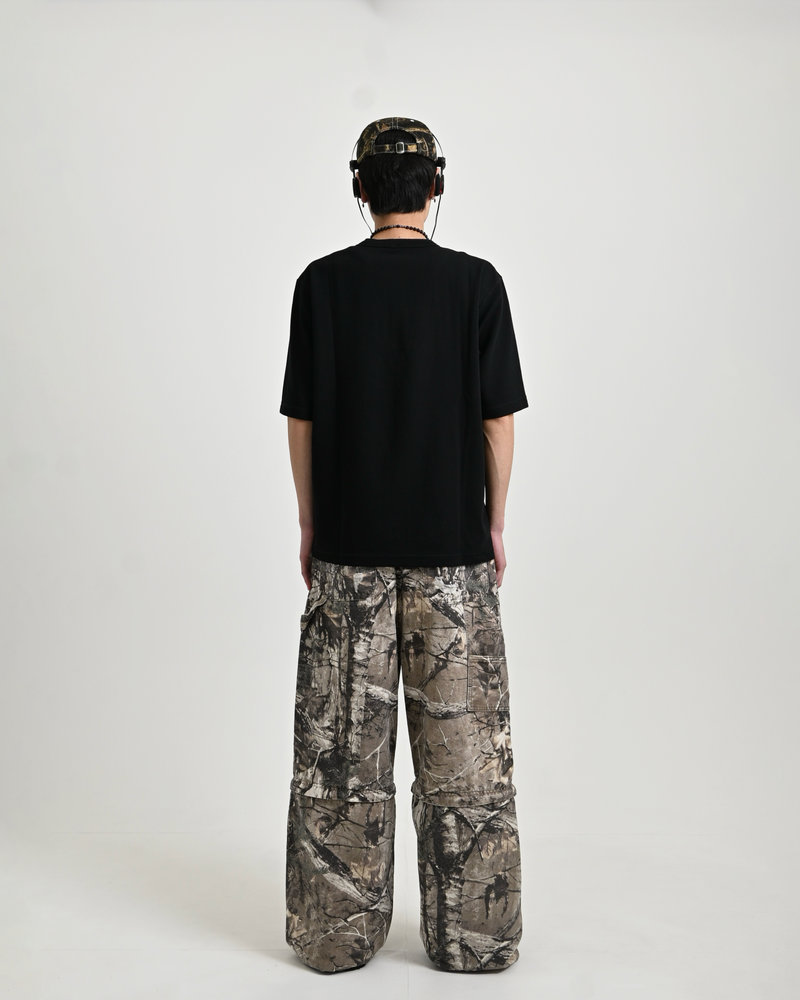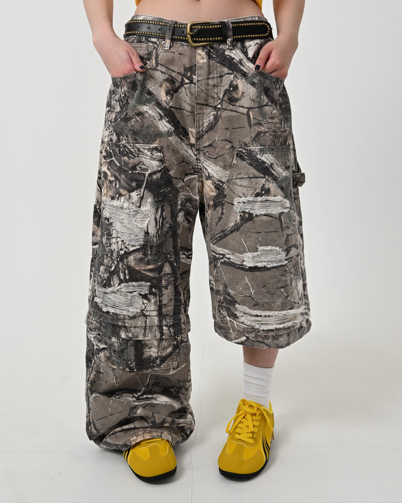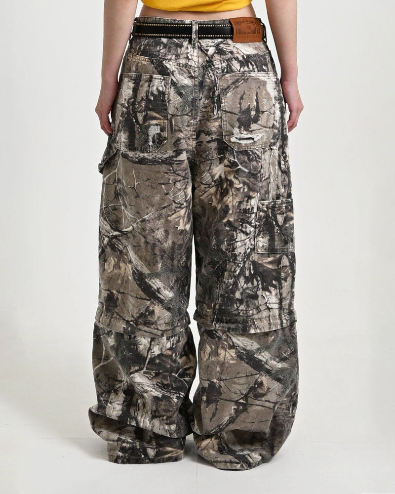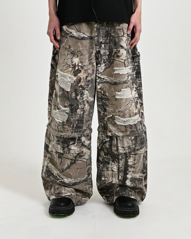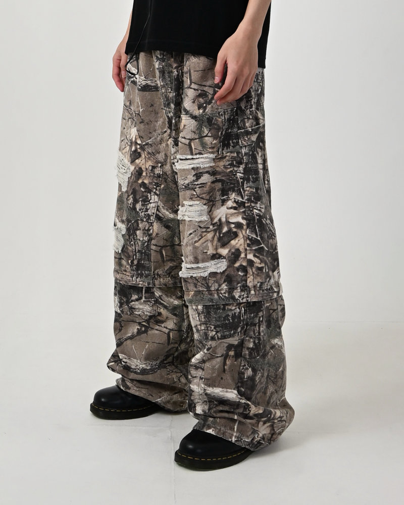 トレンドのリアルツリー柄に、地底人ONLINEらしいダメージ加工をプラス。ヴィンテージ感のある風合いが、シンプルなトップスと合わせるだけでも”こなれた”雰囲気を演出。