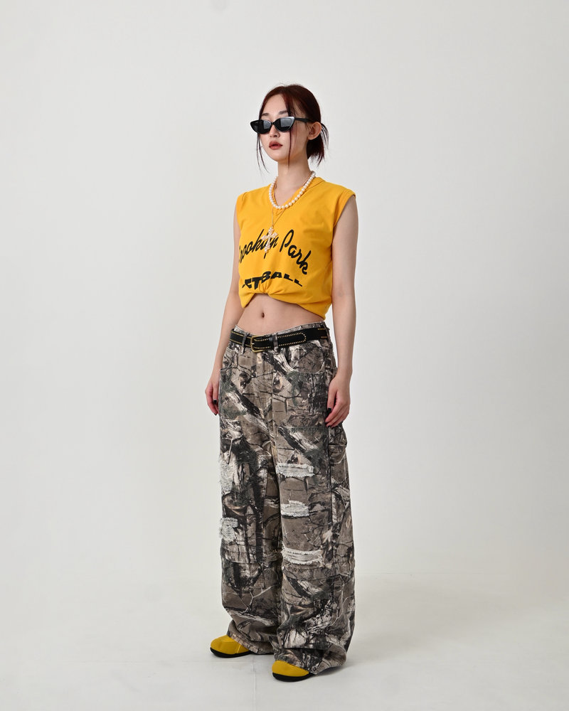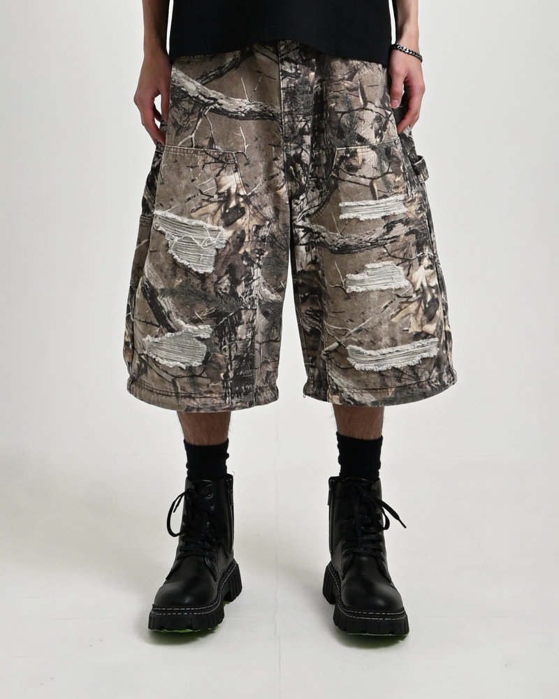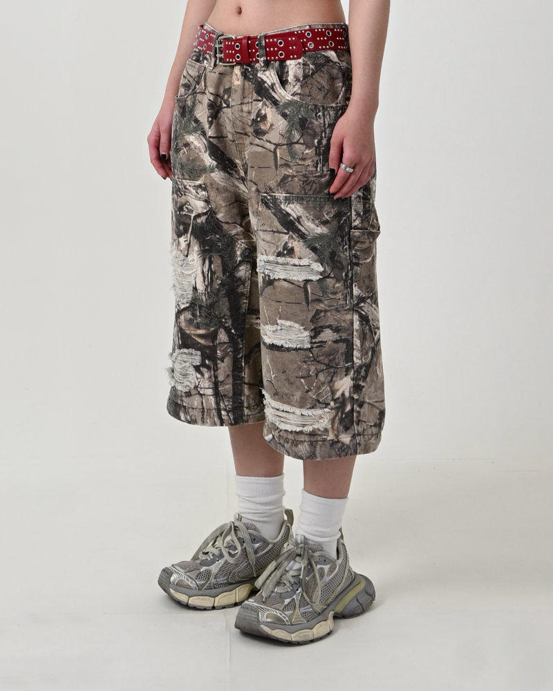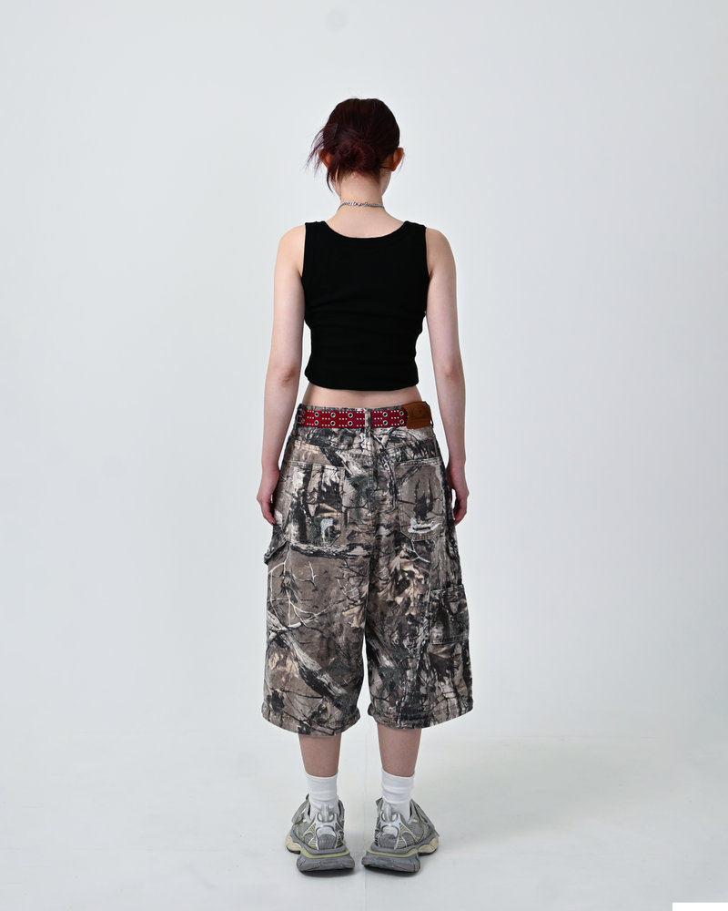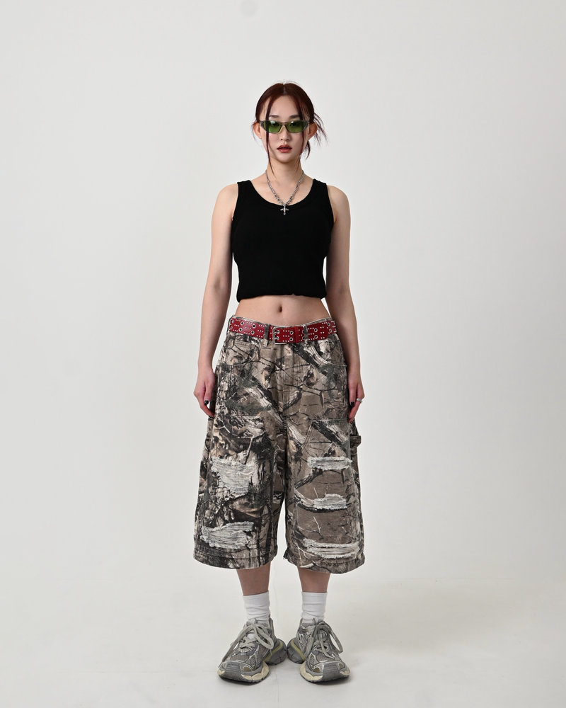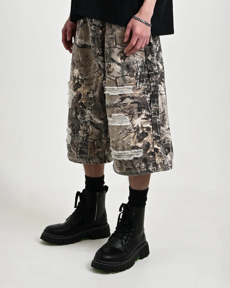 トレンドのリアルツリー柄に、地底人ONLINEらしいダメージ加工をプラス。ヴィンテージ感のある風合いが、シンプルなトップスと合わせるだけでも”こなれた”雰囲気を演出。