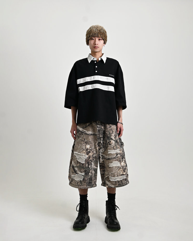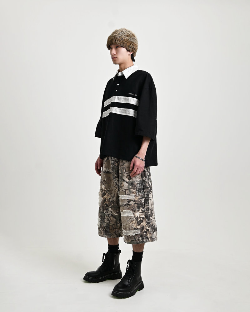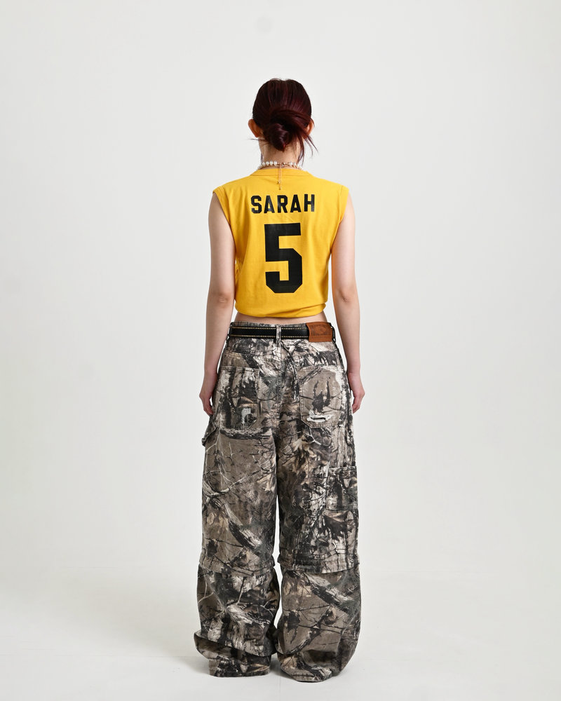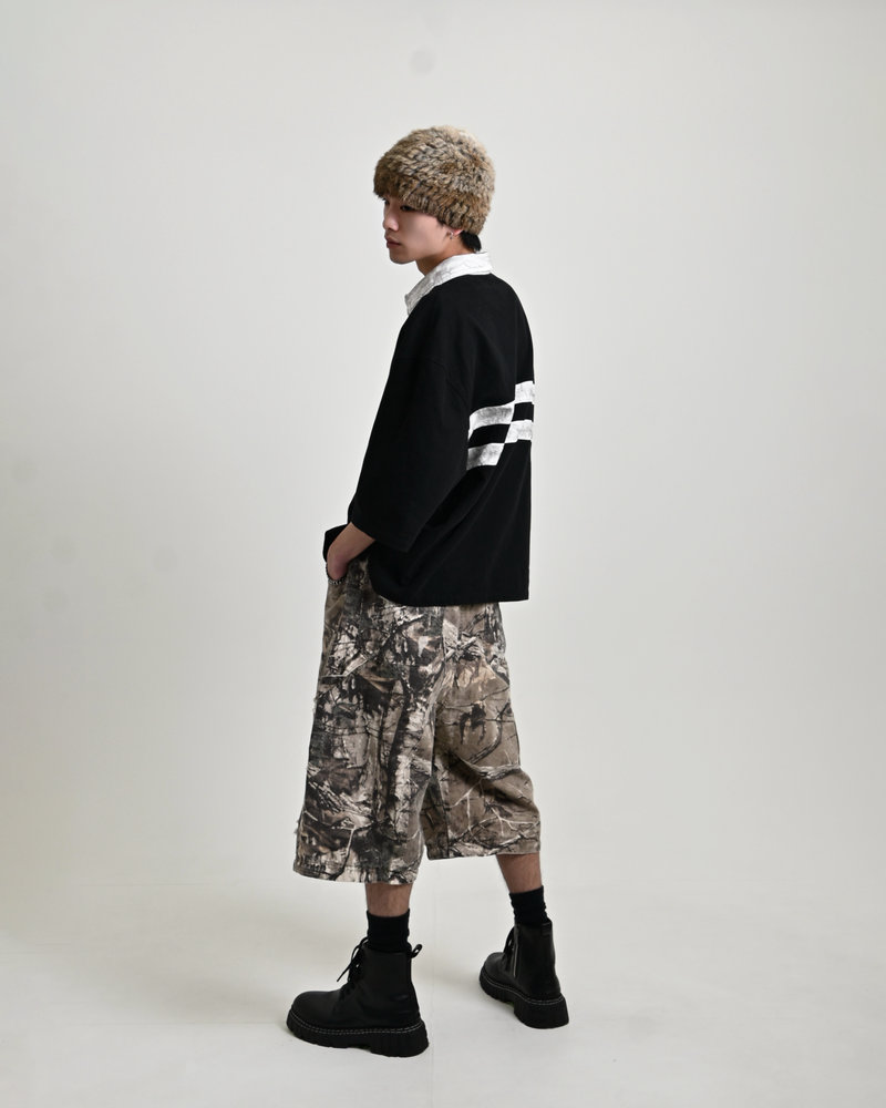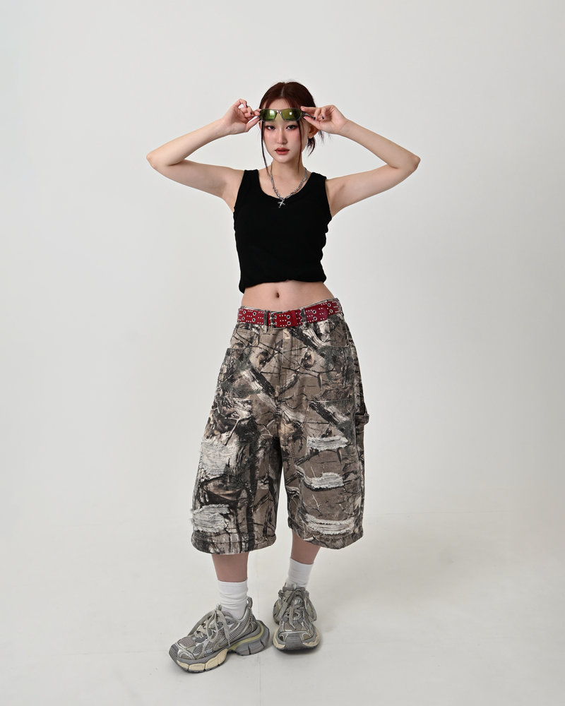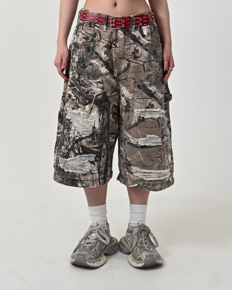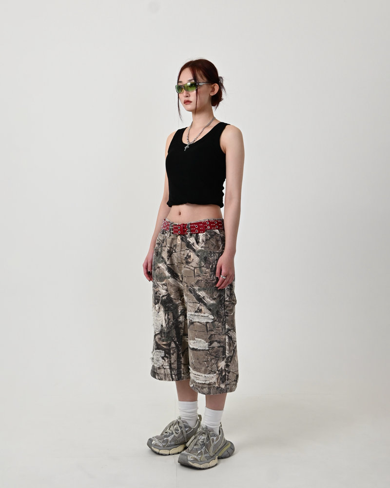 トレンドのリアルツリー柄に、地底人ONLINEらしいダメージ加工をプラス。ヴィンテージ感のある風合いが、シンプルなトップスと合わせるだけでも”こなれた”雰囲気を演出。