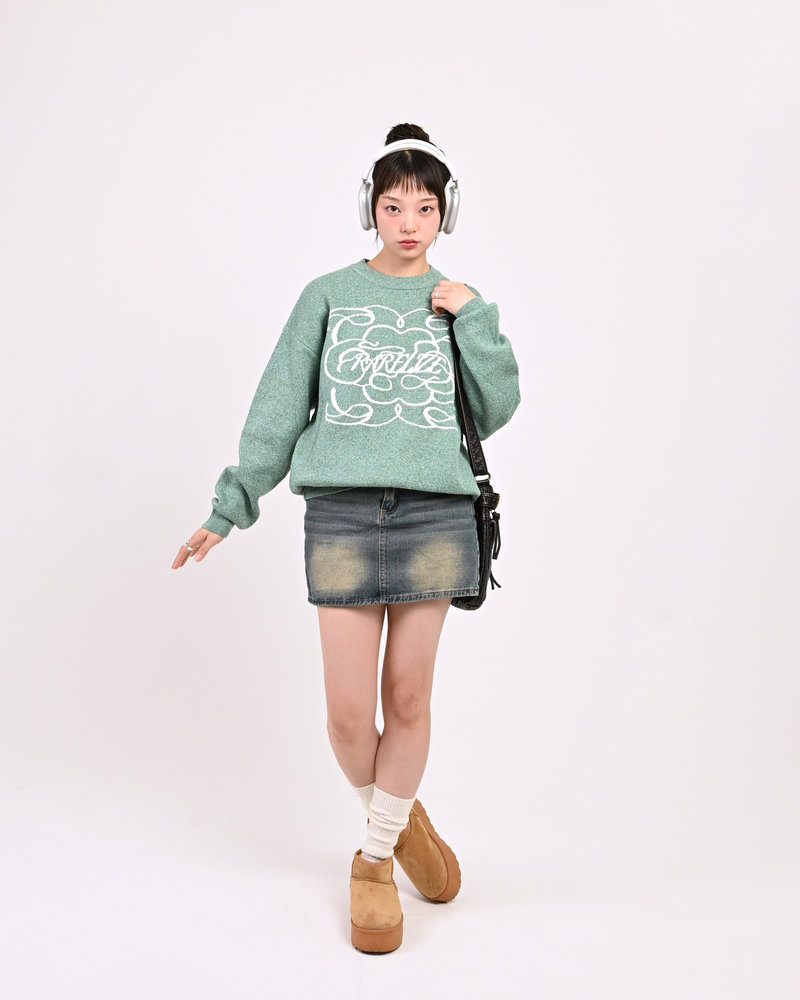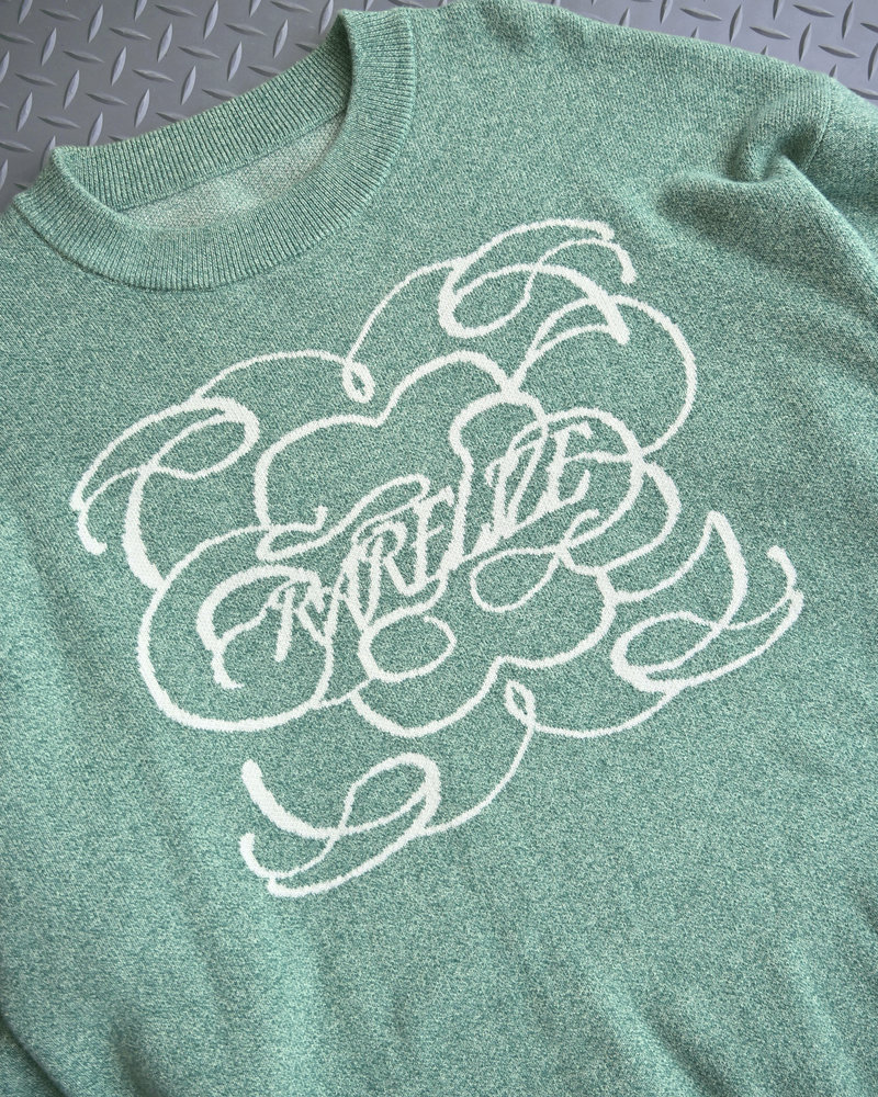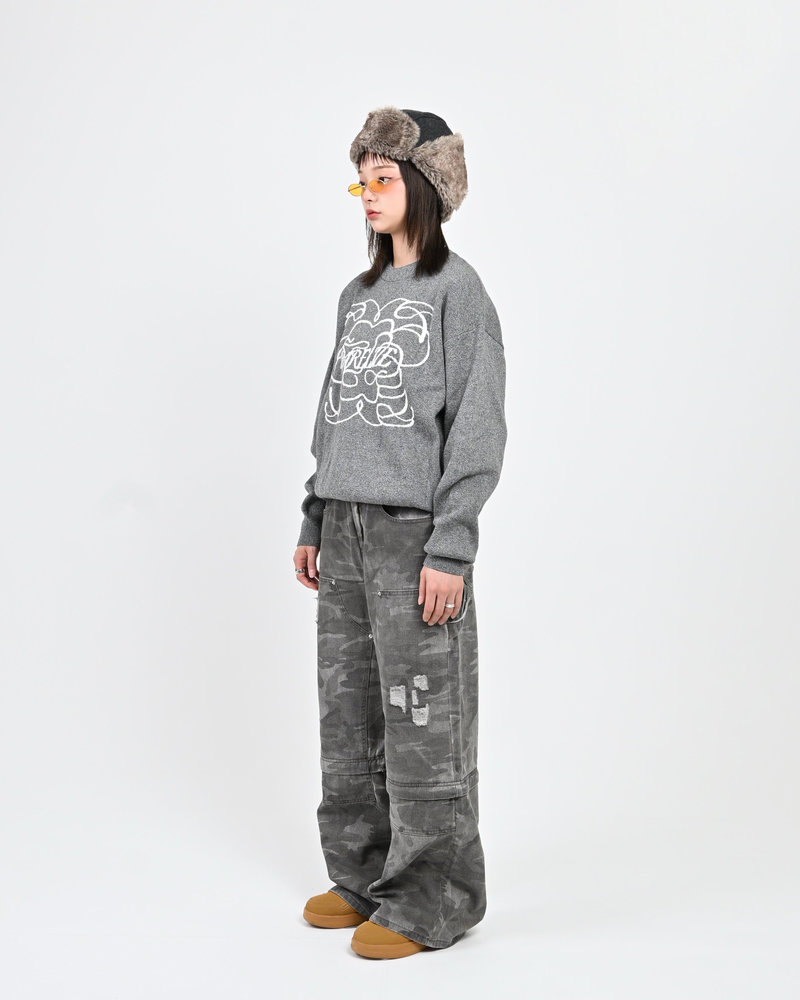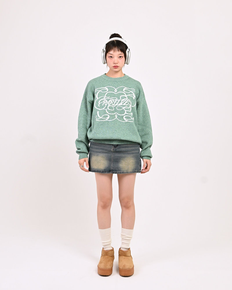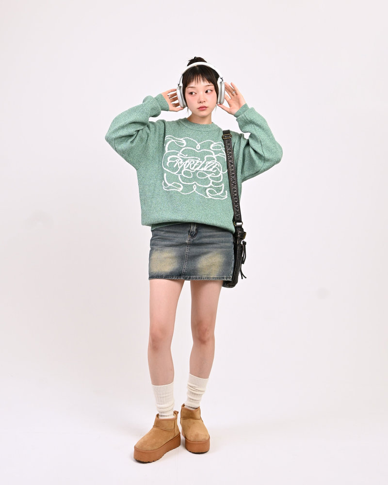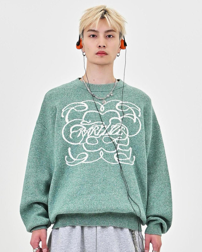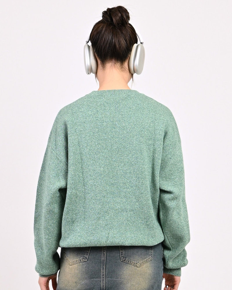 複数の色をミックスして編み上げたメランジニットを採用し、奥行きのある発色と表情を実現。