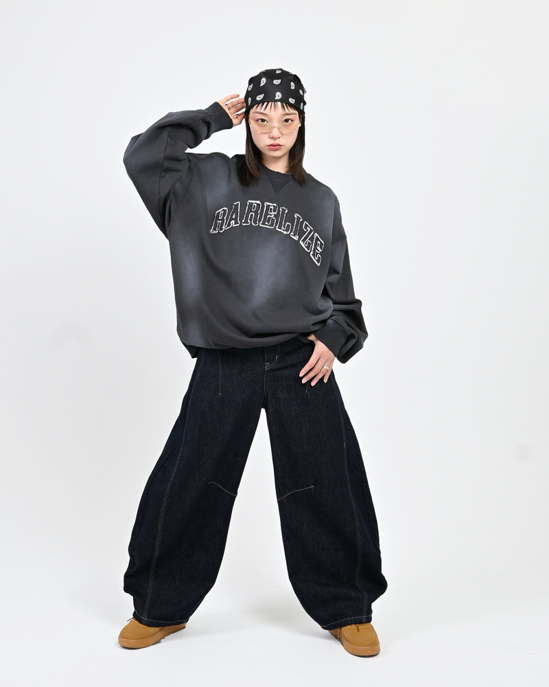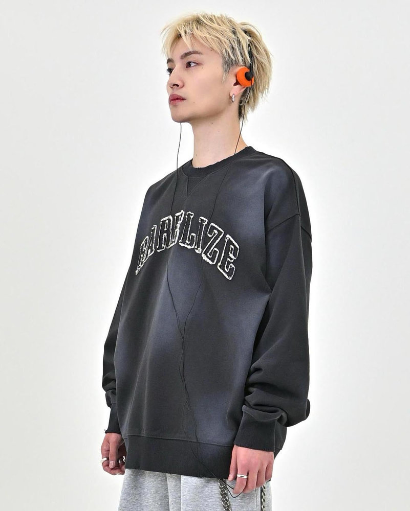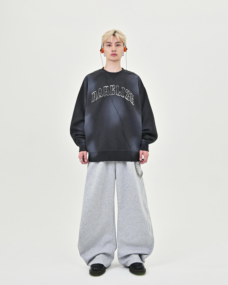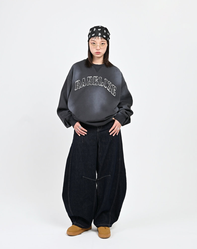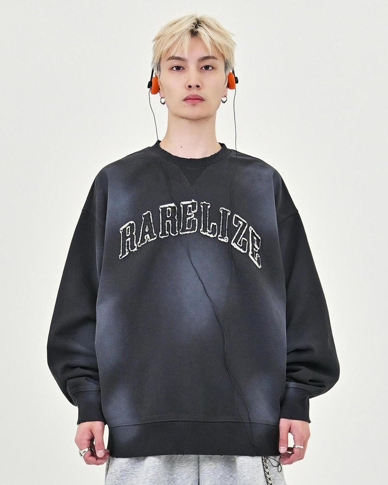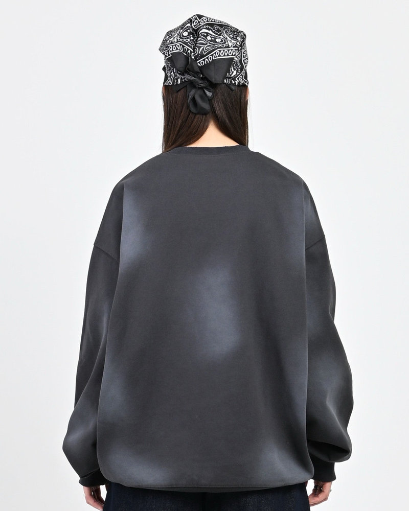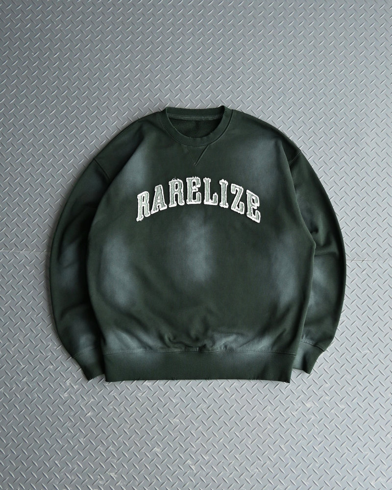 トレンド感たっぷりのウォッシュ加工を施したスウェットに、立体感のあるアップリケロゴをオン。
