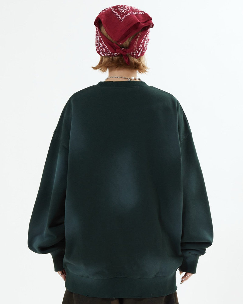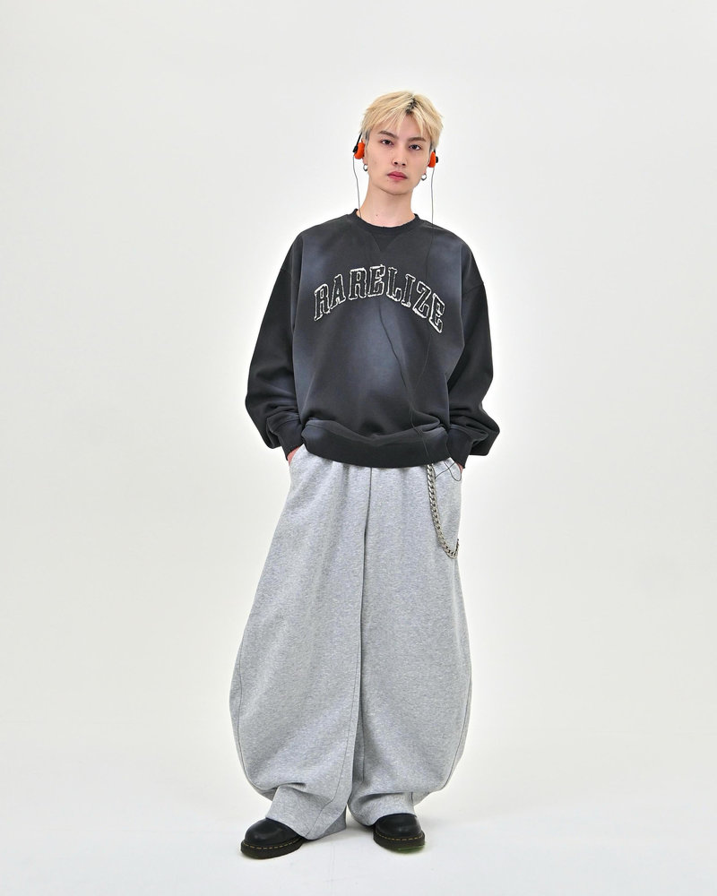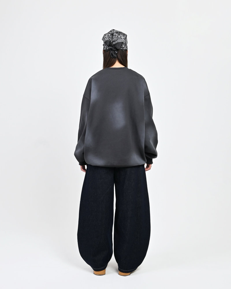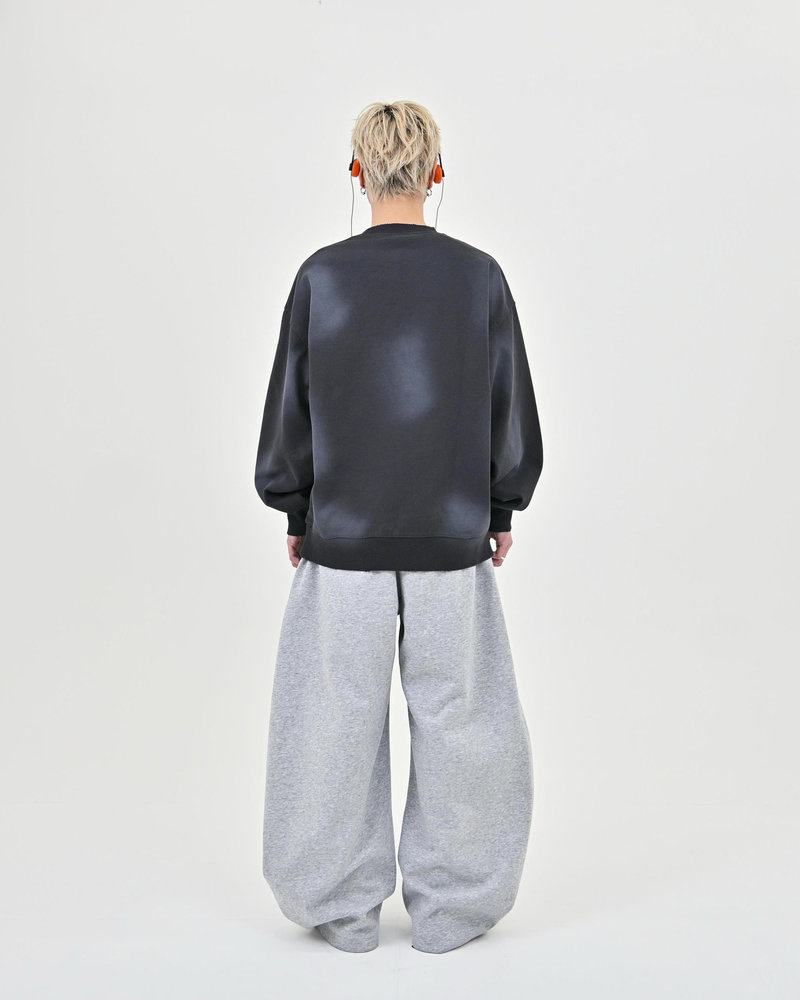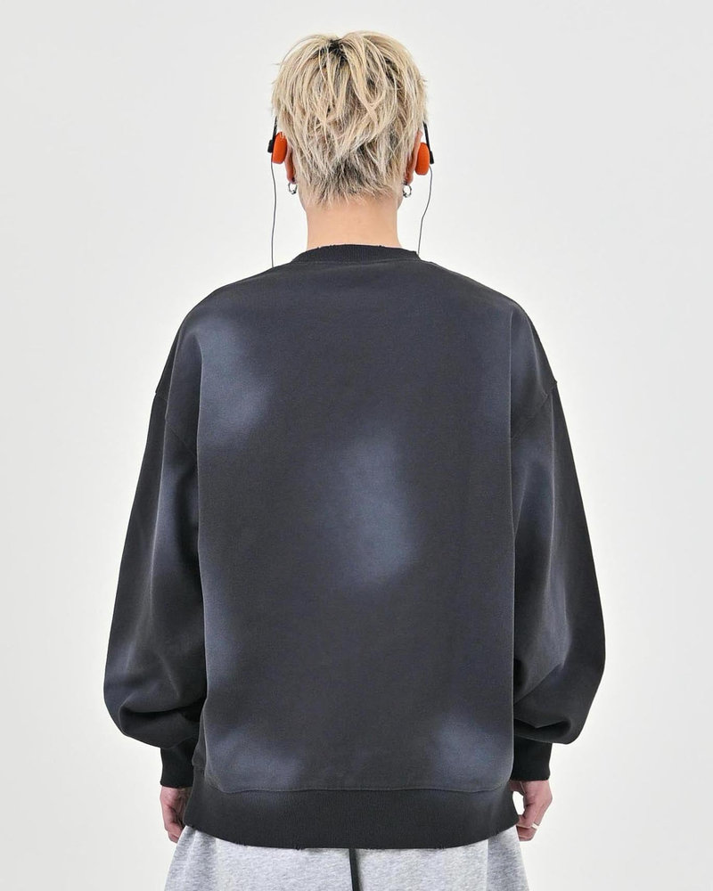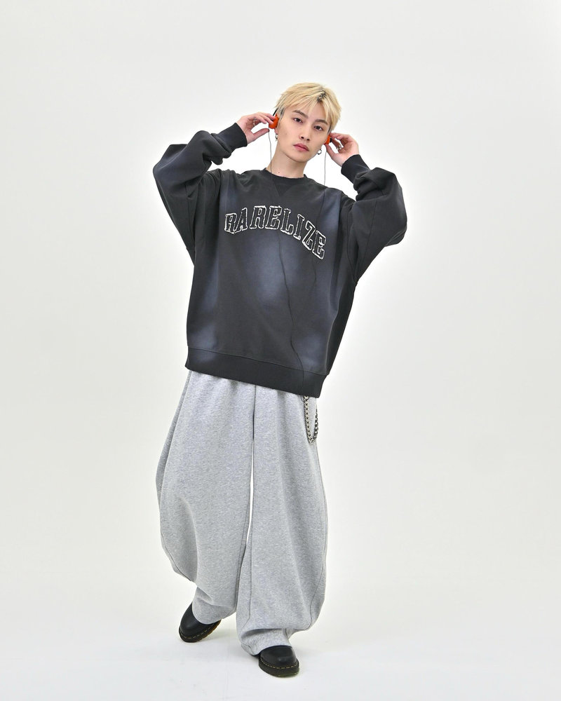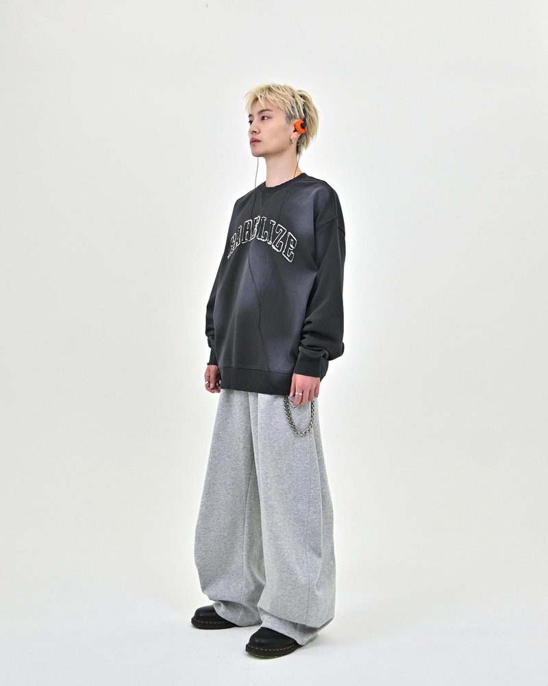 トレンド感たっぷりのウォッシュ加工を施したスウェットに、立体感のあるアップリケロゴをオン。