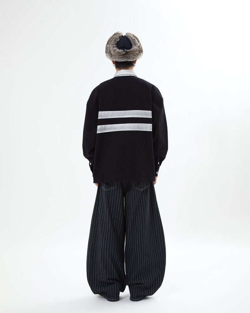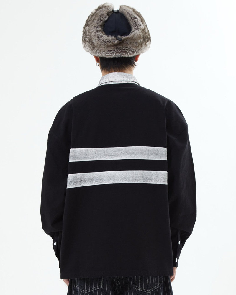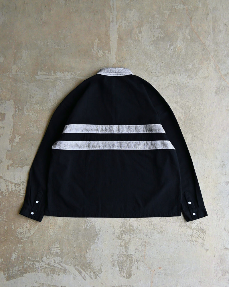 クラシックなラガーシャツの形をベースにしながら、ラインや襟元にヴィンテージライクなエイジング加工を施すことで、どこか懐かしさと渋さを感じる一着に昇華。裾幅をやや広めに設計することで、どの角度から見ても美しく映える絶妙なボックスシルエットに。
