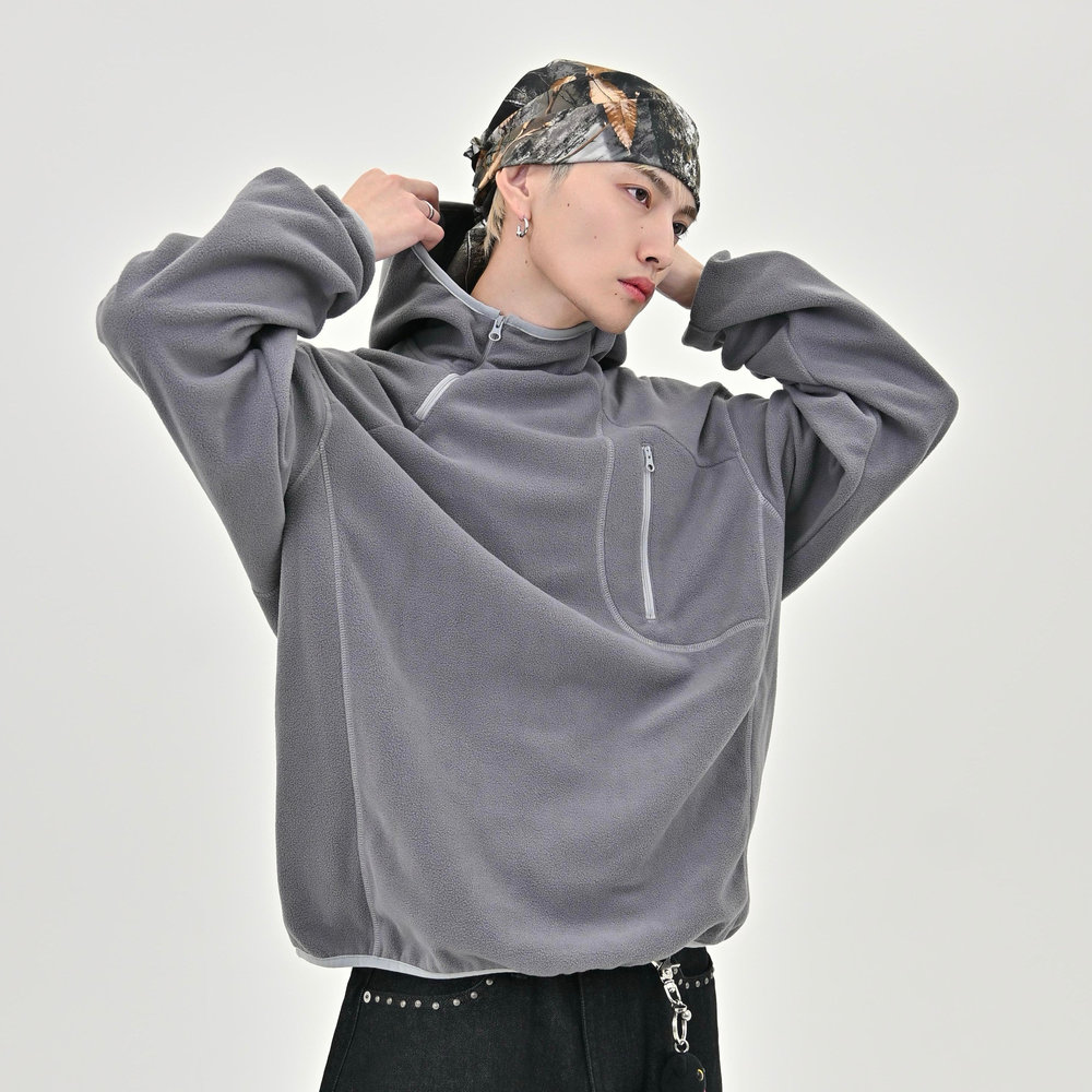 首元から胸元にかけてのジップデザインで、さりげなくY2Kテイストをプラスしたプルオーバーフリースパーカー。