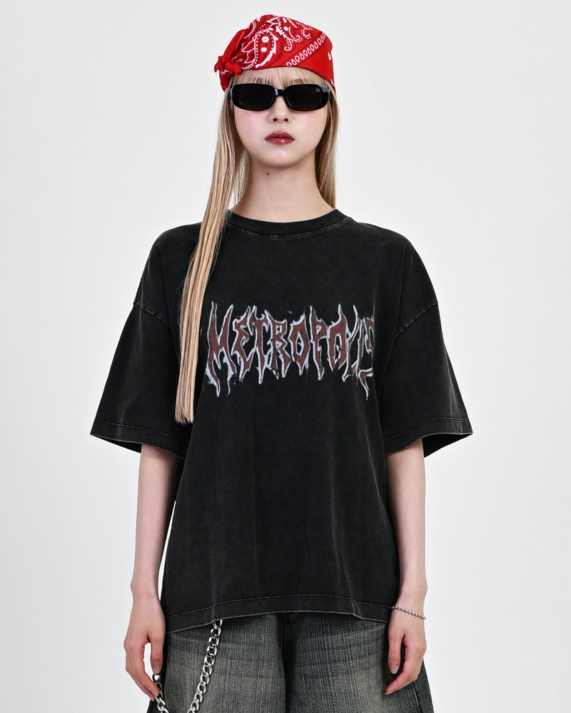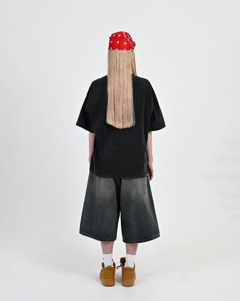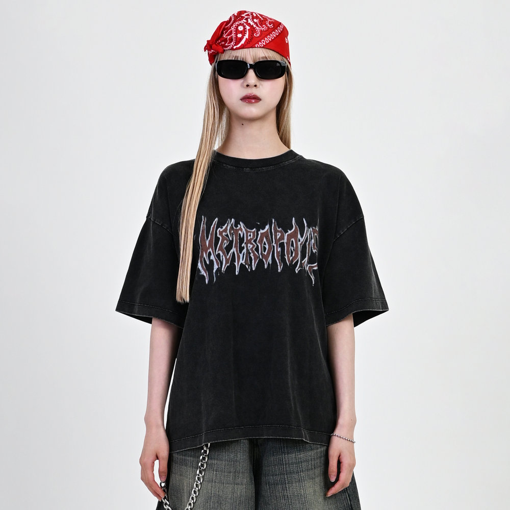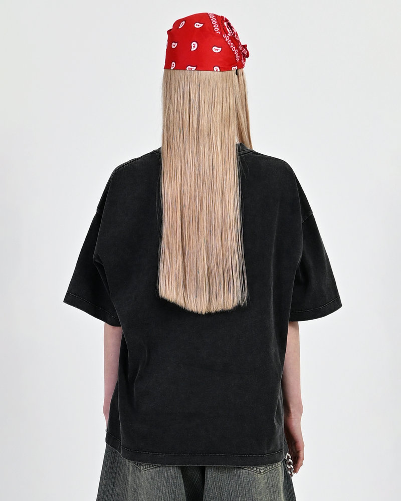 絶妙なウォッシュ加工を施したブラックボディに、アクセントとして赤のクラッシュロゴを配置。シンプルなスタイリングでも存在感を放つ、主役級の一枚です。