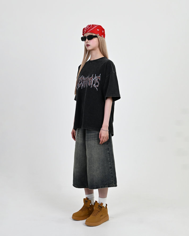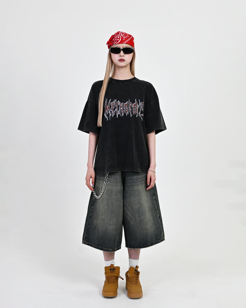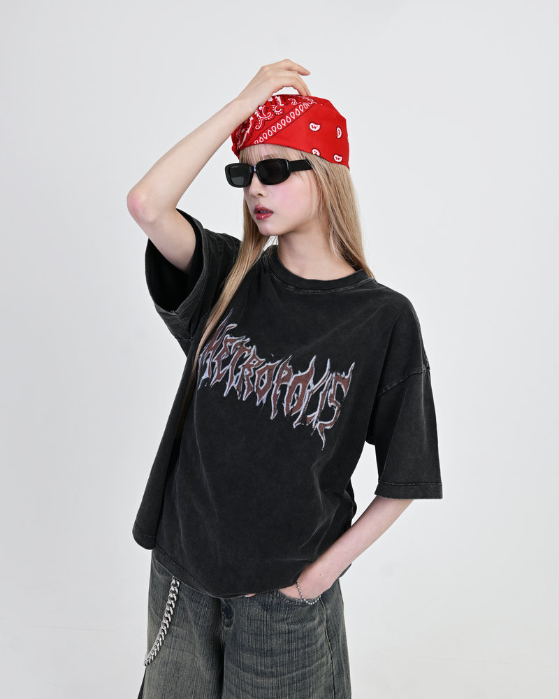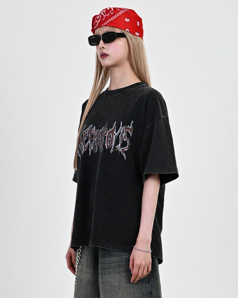 絶妙なウォッシュ加工を施したブラックボディに、アクセントとして赤のクラッシュロゴを配置。シンプルなスタイリングでも存在感を放つ、主役級の一枚です。