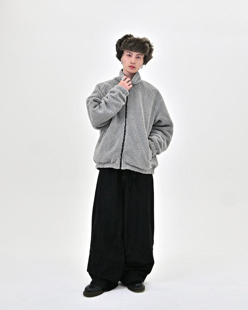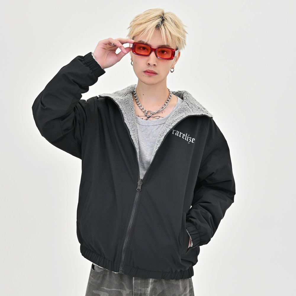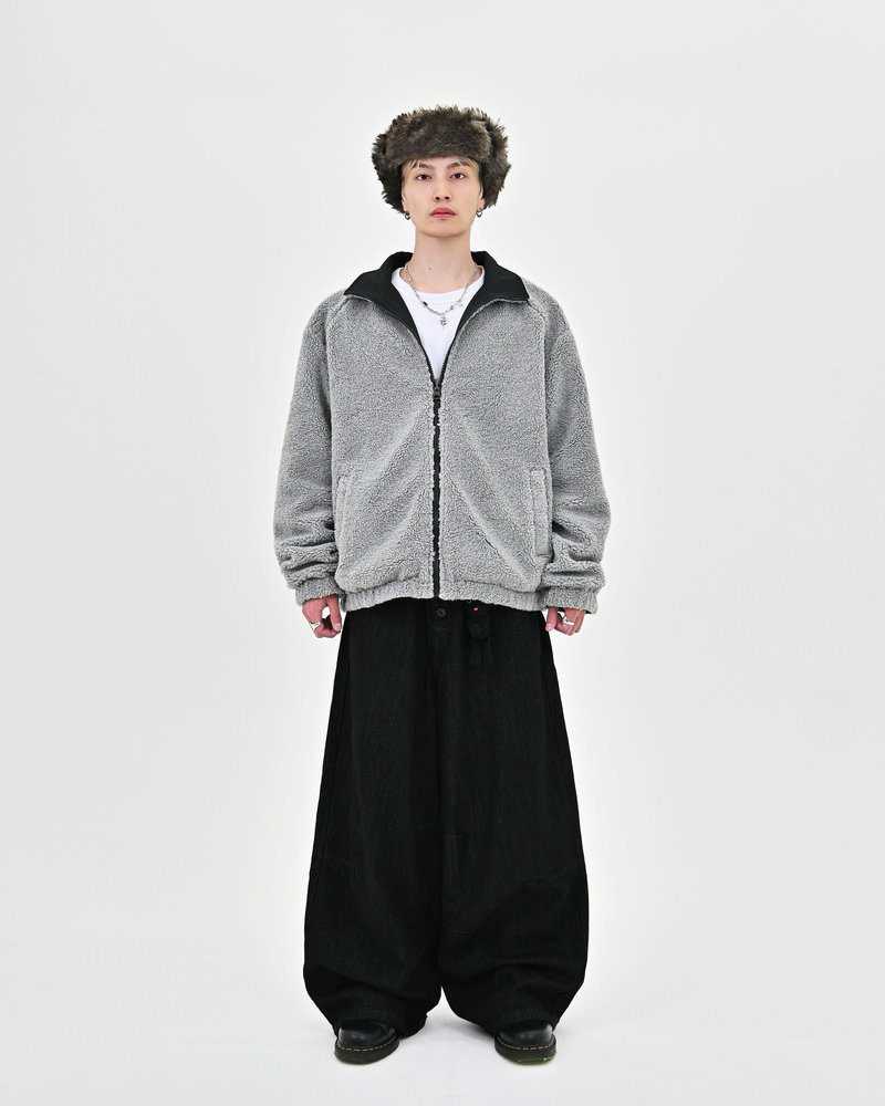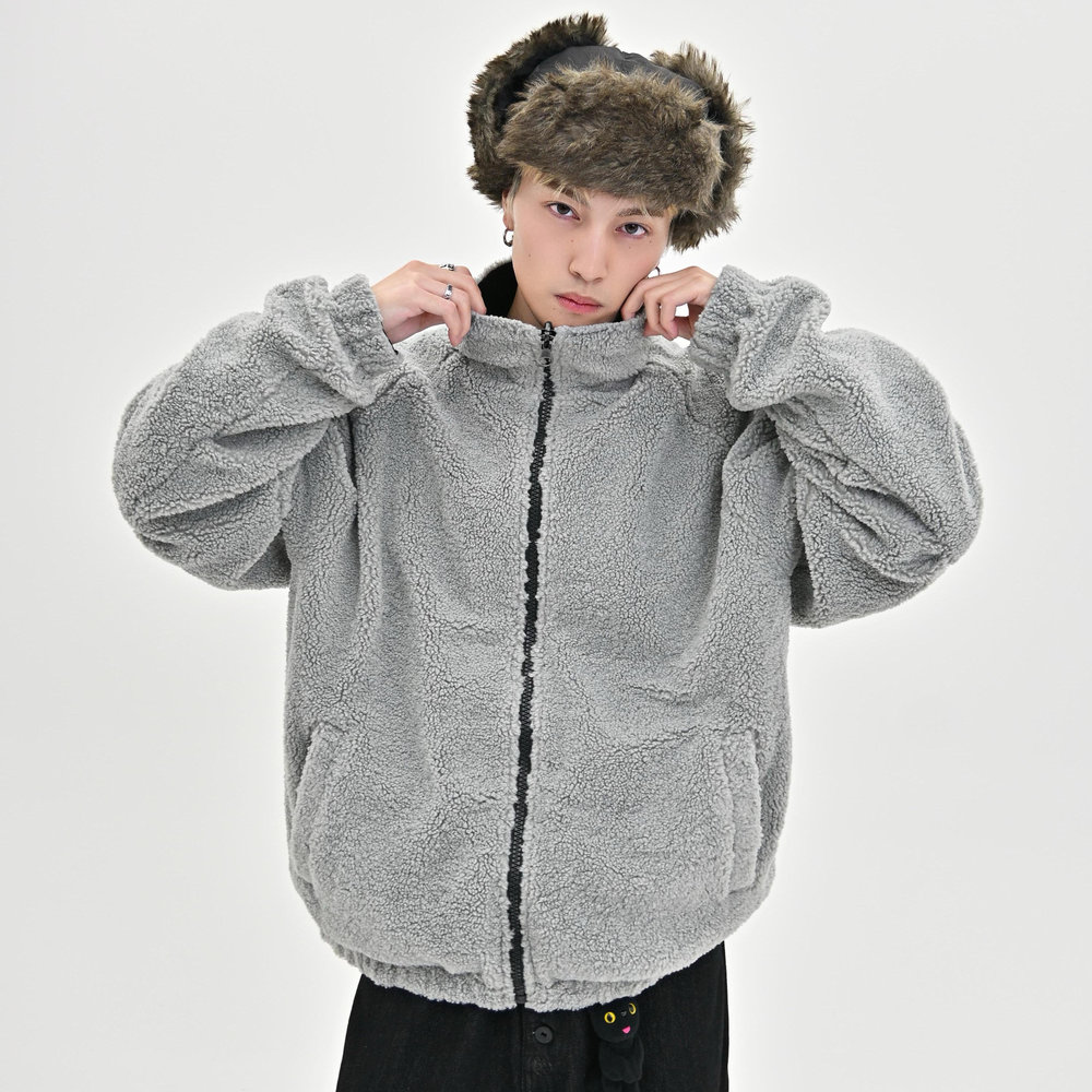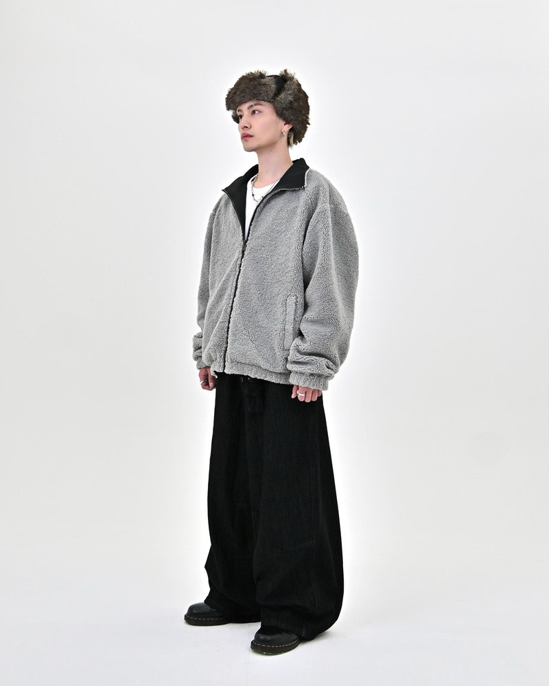両面での着用を前提に設計され、ブラックのナイロン面とグレーのフリース面、どちらも着回し力抜群。