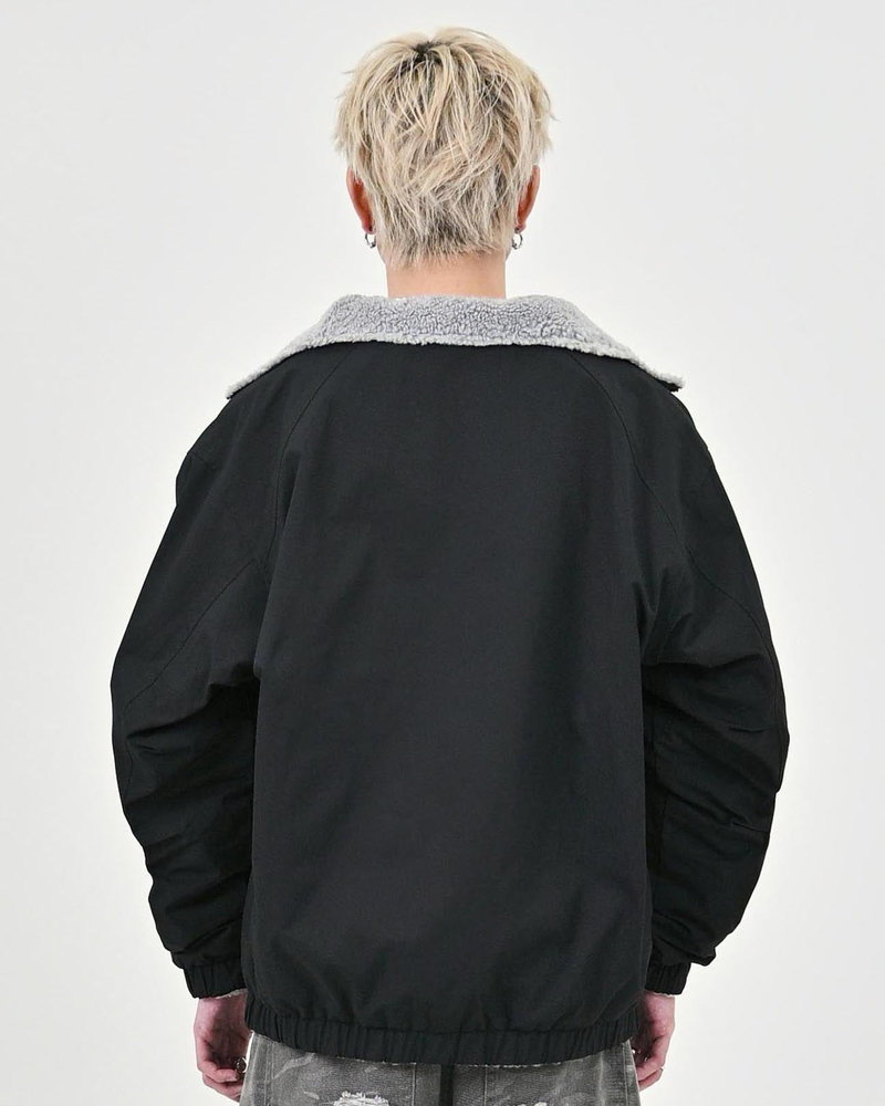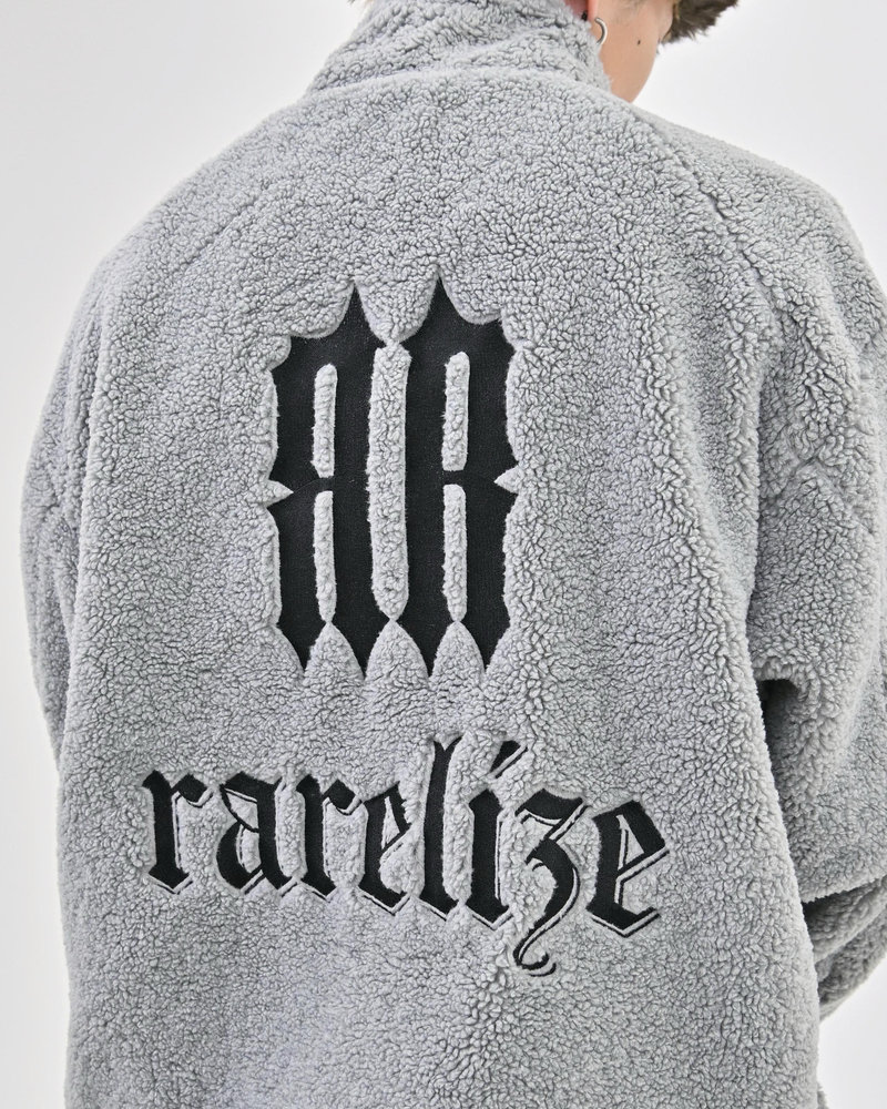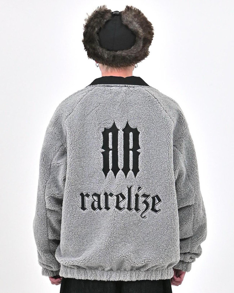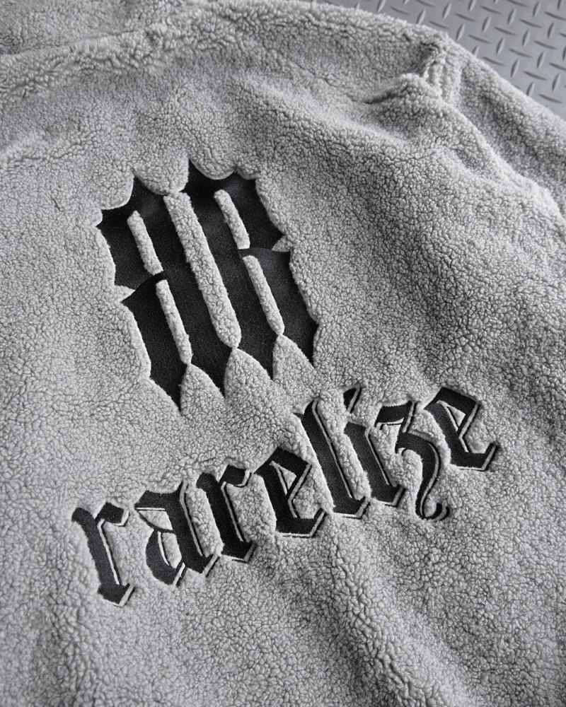 フリース面の背面には、トレンドのブラックレター調バックロゴを配置。ナイロン面はフロントロゴのみのミニマルデザインで、スタイリングを選びません。