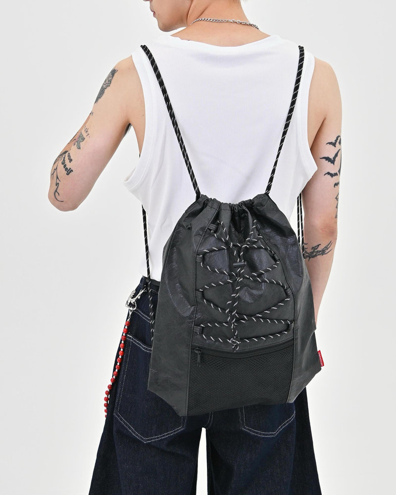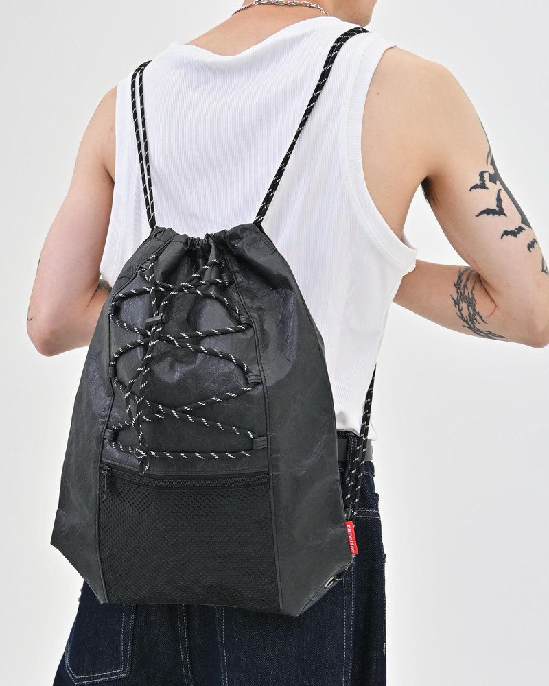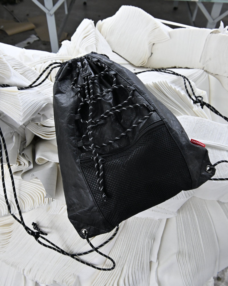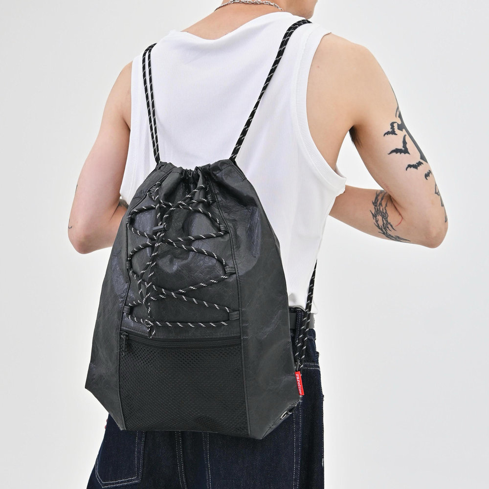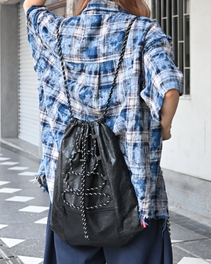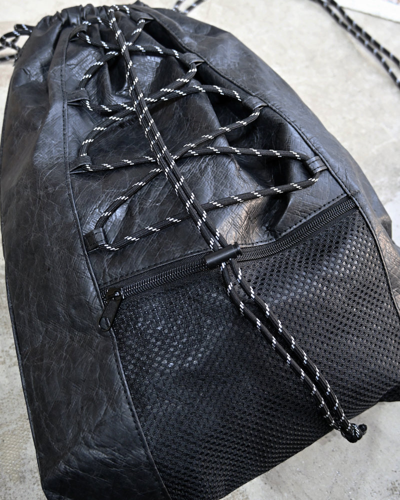夏の定番?トートバッグに、軽くて丈夫な「タイベック」素材を採用。まるで紙のような独特の質感が、シンプルな黒を一気に“特別”に変えてくれる。一見ベーシック、でも素材で唯一無二感感を演出。